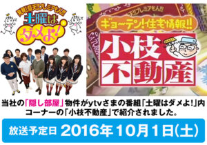 2016年10月1日、また小枝不動産に当社が出演しました。